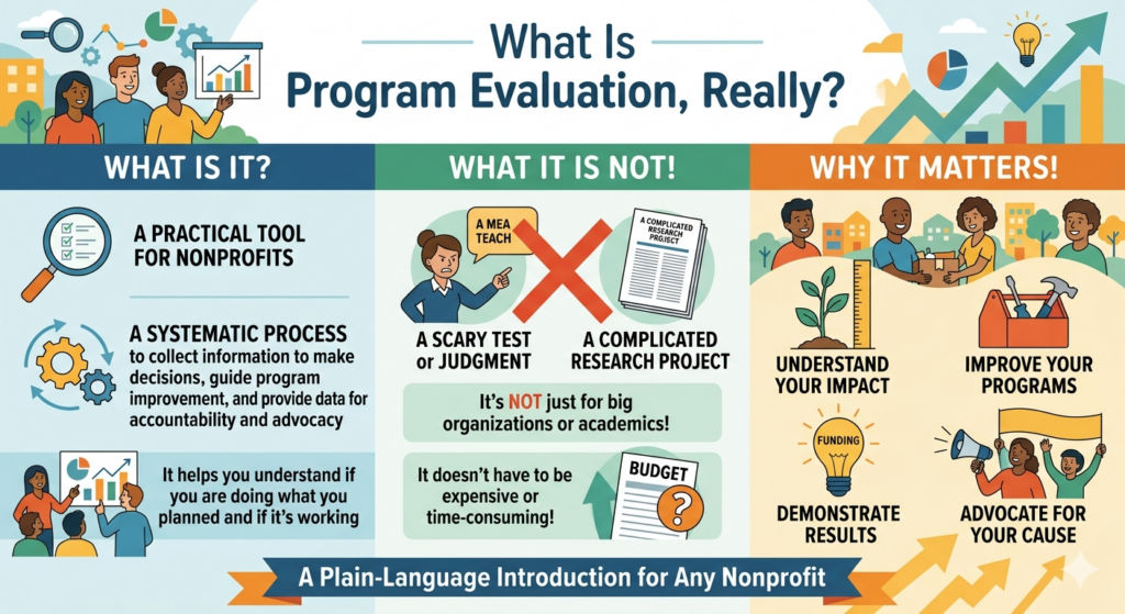 If you run a nonprofit, you’ve probably asked yourself at some point: “Is what we’re doing actually working?” It’s an honest question and a brave one. Program evaluation is the structured process that helps you answer it with confidence rather than guesswork.Yet for many organizations, the words “program evaluation” trigger anxiety. It sounds expensive. It […]